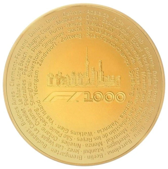 The F1 1000 logo, Shanghai's skyline, and the names of every host city since 1950.