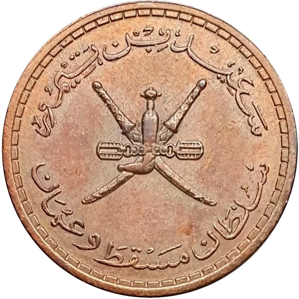 Saidi Rial in 1970, pegged to the Pound Sterling and later the US Dollar, marking Oman's decisive move toward monetary sovereignty as the oil era dawned.