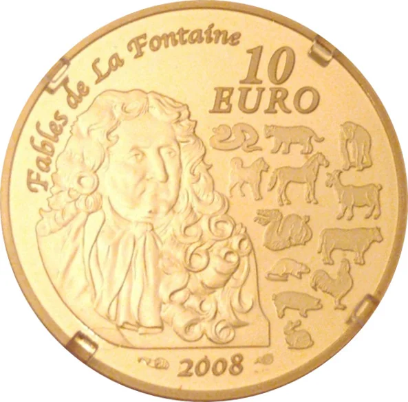 Portrait of Jean de la Fontaine and all animals of the Chinese zodiac.