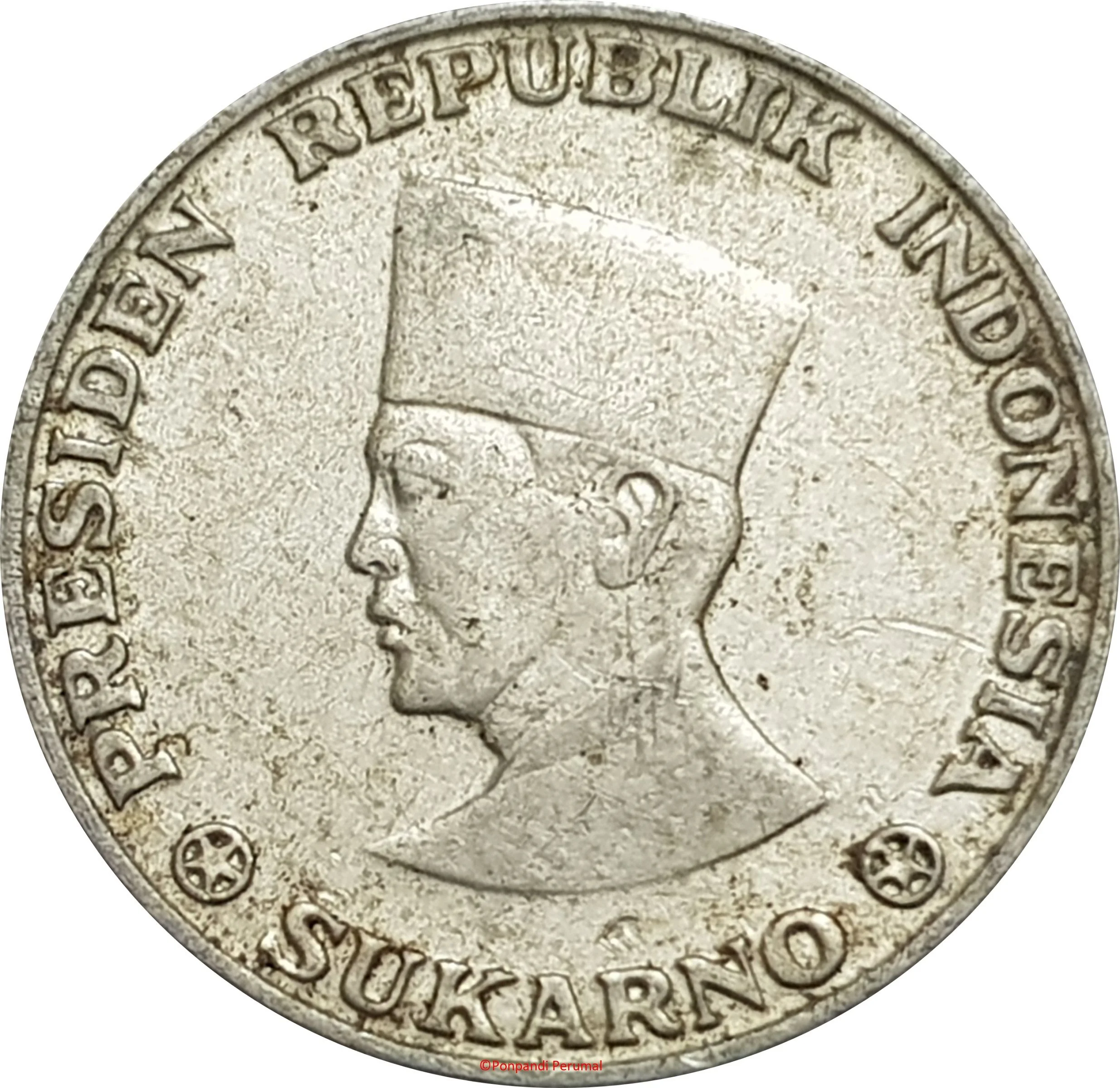 Sukarno's head facing left, encircled by legend.
