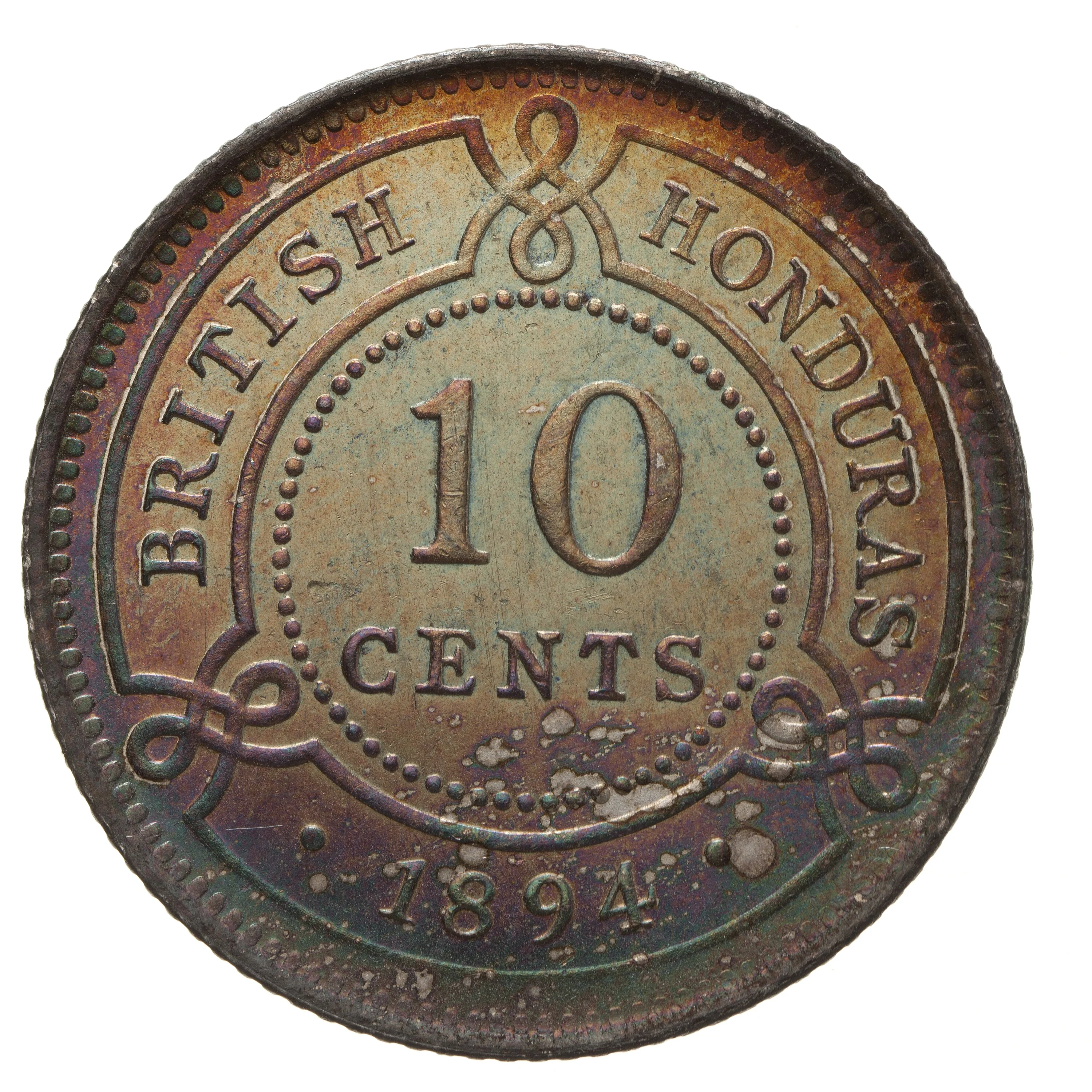 In 1894, British Honduras (modern-day Belize) operated under a complex and often inadequate currency system typical of many British colonial outposts. The official currency was the British pound sterling, but in practice, the colony suffered from a chronic shortage of official coinage. This scarcity was exacerbated by the territory's economic reliance on the mahogany trade, which was conducted largely on credit and with barter, failing to circulate sufficient hard currency for daily public use. Consequently, a variety of foreign coins, primarily Mexican and Spanish-American silver dollars (reales and pesos), circulated widely and were accepted for government payments, creating a de facto multi-currency environment.