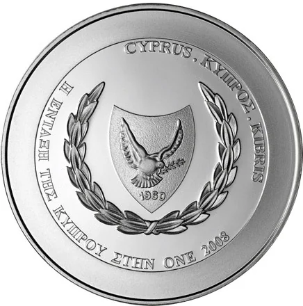 Central Bank of Cyprus emblem with «ΚΥΠΡΟΣ», «KIBRIS», «CYPRUS» and «Η ΕΝΤΑΞΗ ΤΗΣ ΚΥΠΡΟΥ ΣΤΗΝ ΟΝΕ 2008».