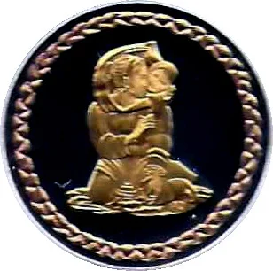 Gold-plated Inuit mother carrying a baby in her hood.