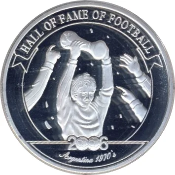 Daniel Passarella holding the World Cup, arms raised.