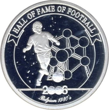 Eric Gerets passing the ball with Brussels' Atomium at right.