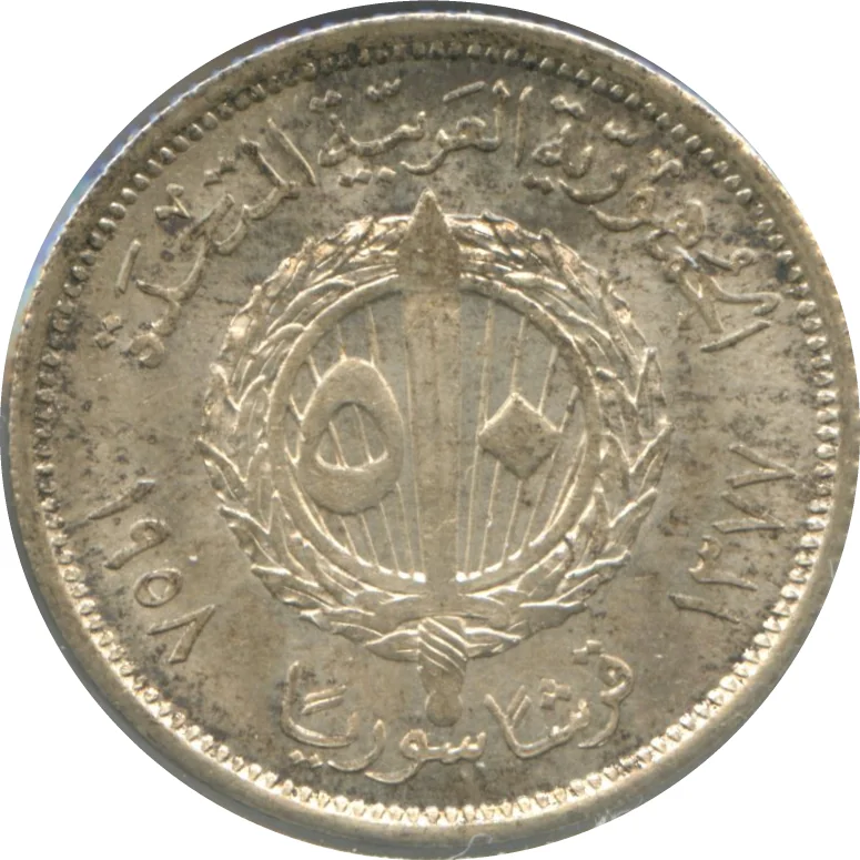 The creation of the UAR in February 1958 triggered immediate monetary integration. A central bank, the Central Bank of Syria and Egypt, was established in Damascus to replace the old currency board, marking a shift toward a more active central banking model. While the Syrian and Egyptian pounds remained separate physical currencies, they were declared legally equal and interchangeable at par (1:1) within the union. This was a political symbol of unity, intended to facilitate trade and economic merger, though in practice, full monetary union was never fully realized.