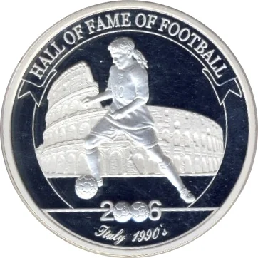 Roberto Baggio running left with ball, Rome's Colosseum in background, inside a circle.