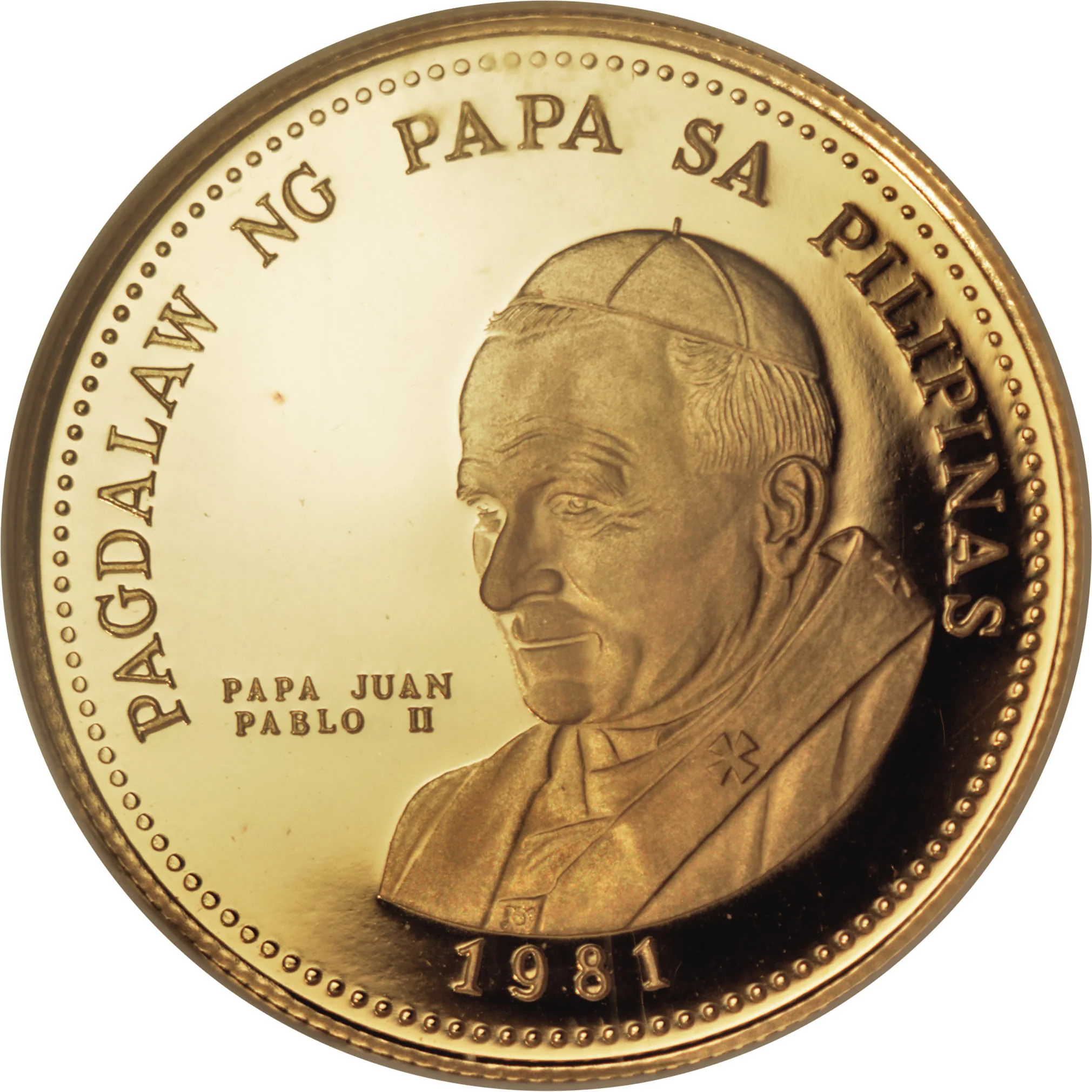 Pope John Paul II in left-profile bust, wearing a zucchetto.