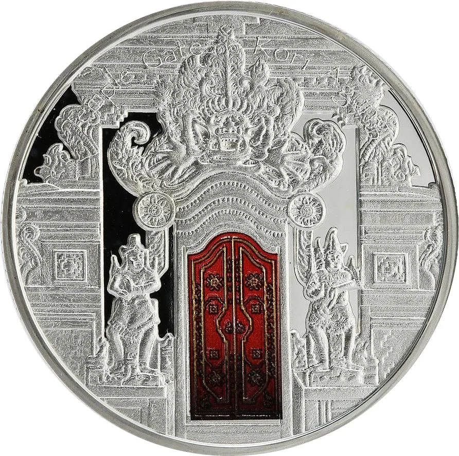 A partially colored door replicating the temple's original gold-plated gateway.