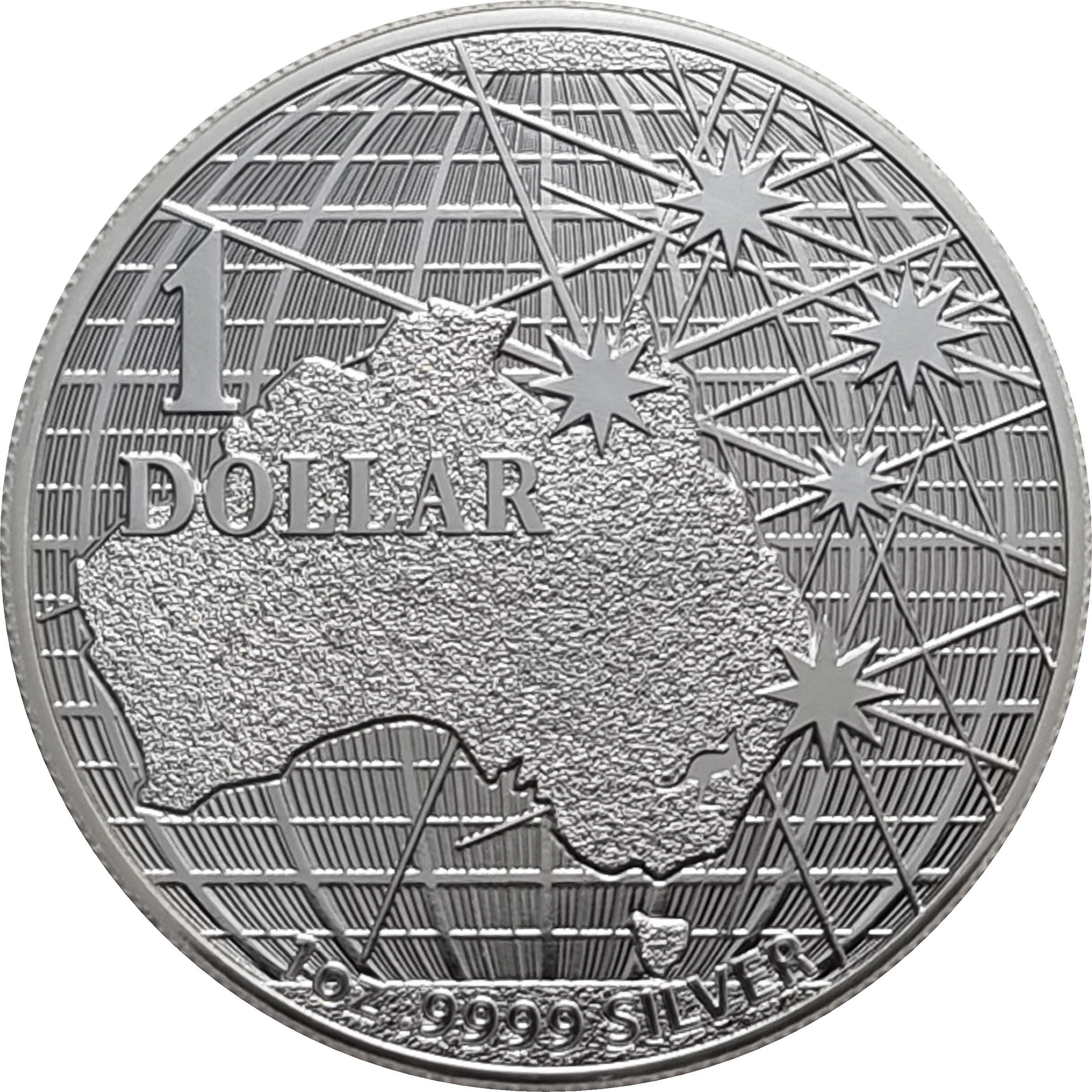 Australian map on a gridded globe, with the Southern Cross stars to the right and a small kangaroo marking Canberra.