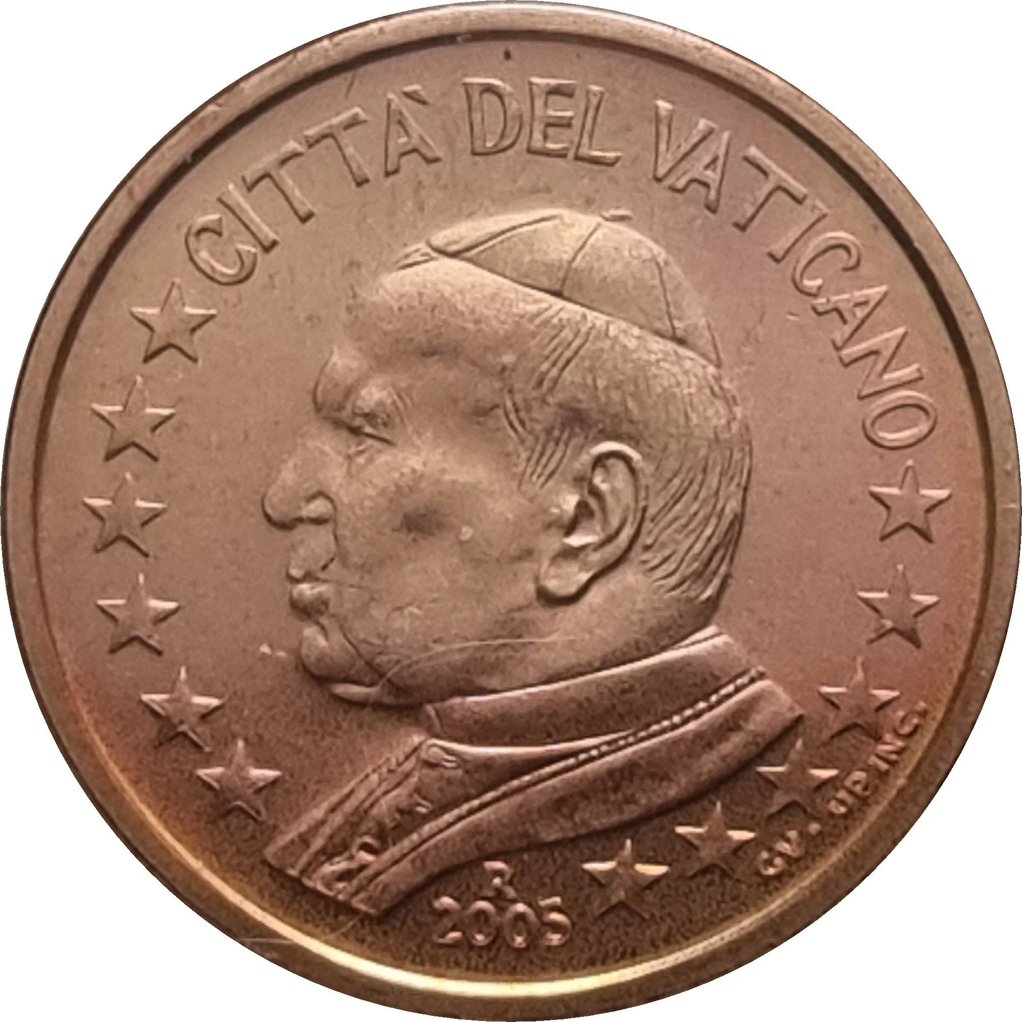 John Paul II in left profile, encircled by "CITTA' DEL VATICANO" and the twelve European stars.
