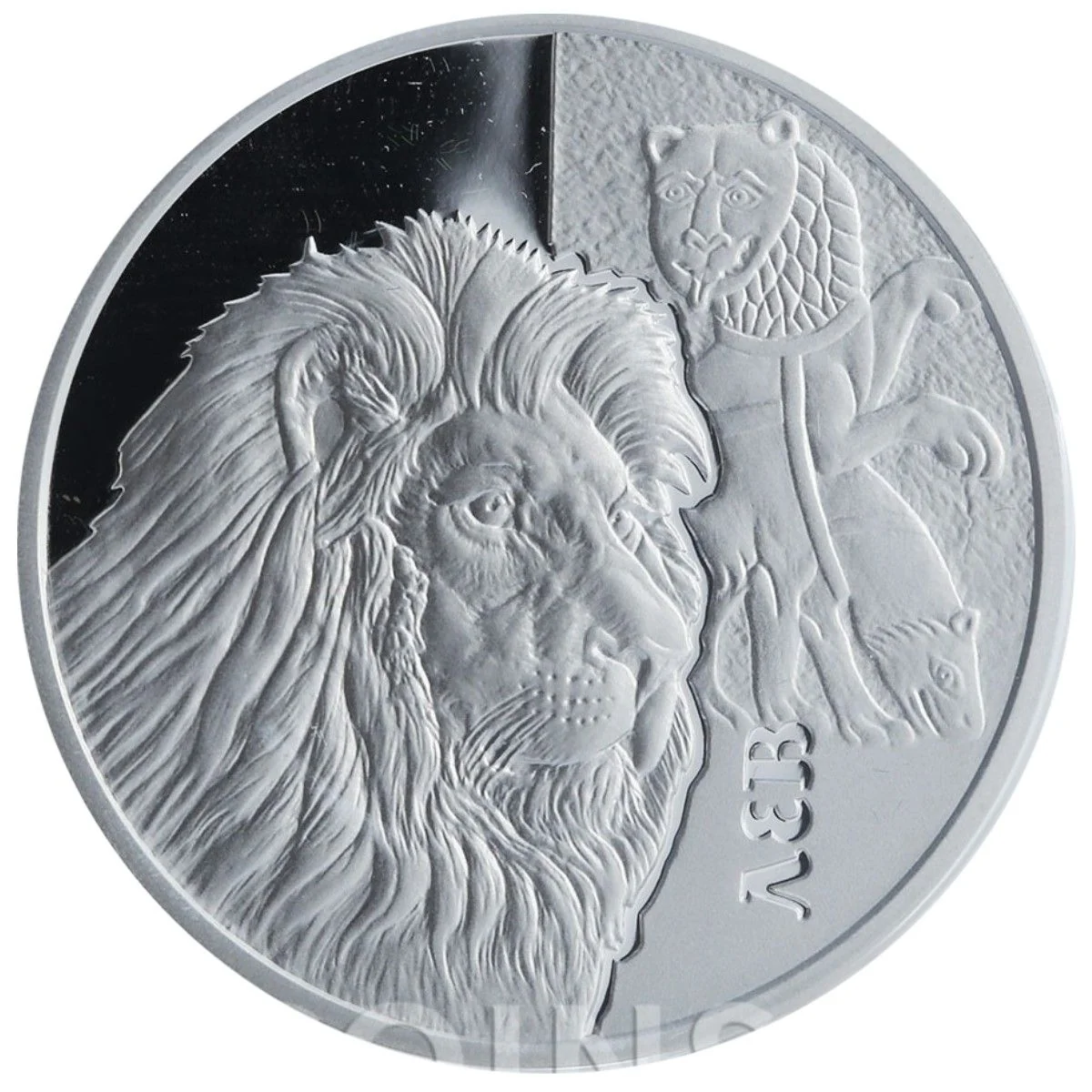 A lion's head sits beside a fragment of 11th-century slate relief from Kyiv's Pechersk Lavra, depicting lions. Such antique motifs—griffons, centaurs, and dragons—were popular in old Rus decorative art.