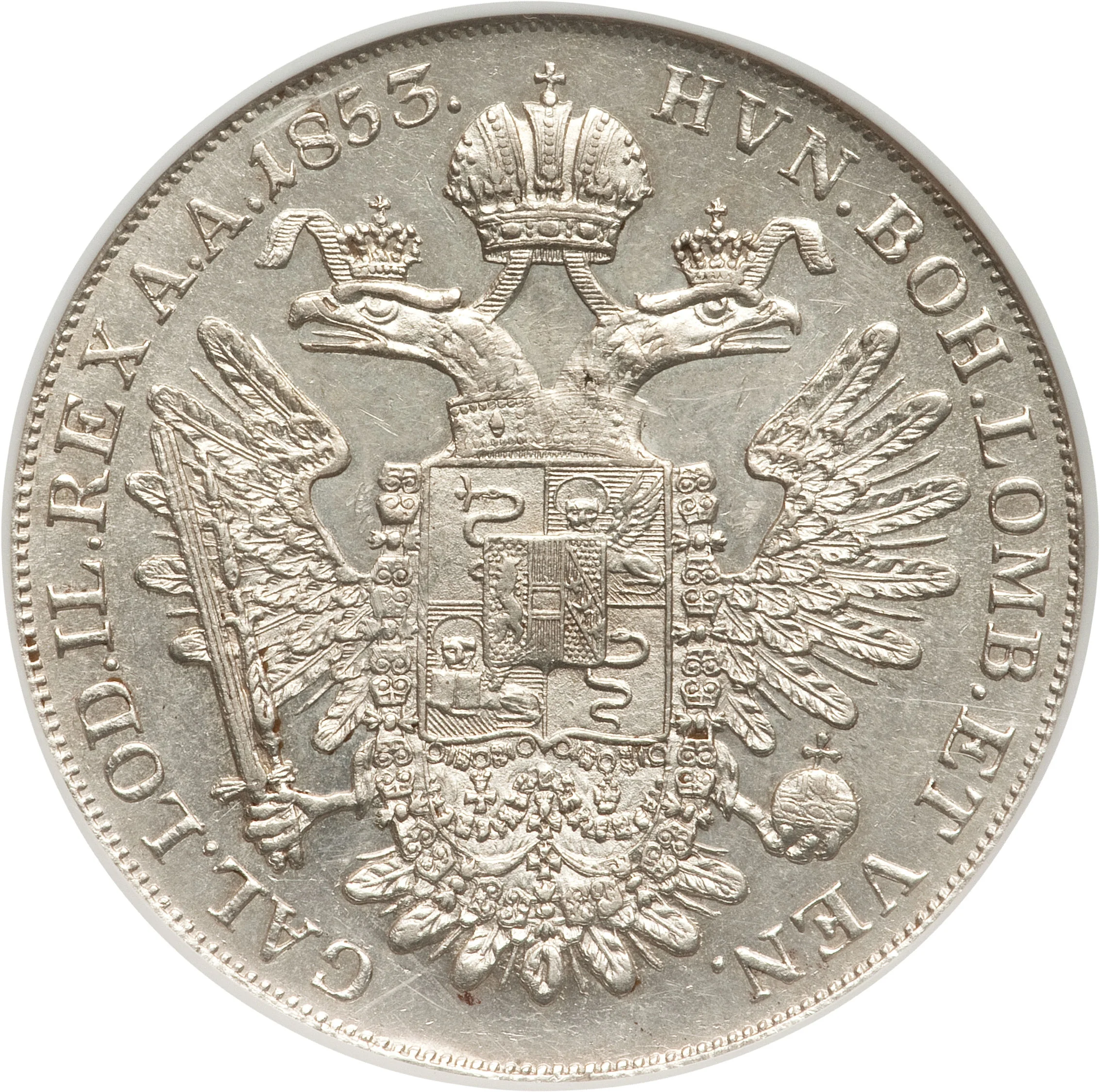 Inscription: HVN • BOH • LOMB • ET VEN • GAL • LOD • IL • REX A • A • 1853