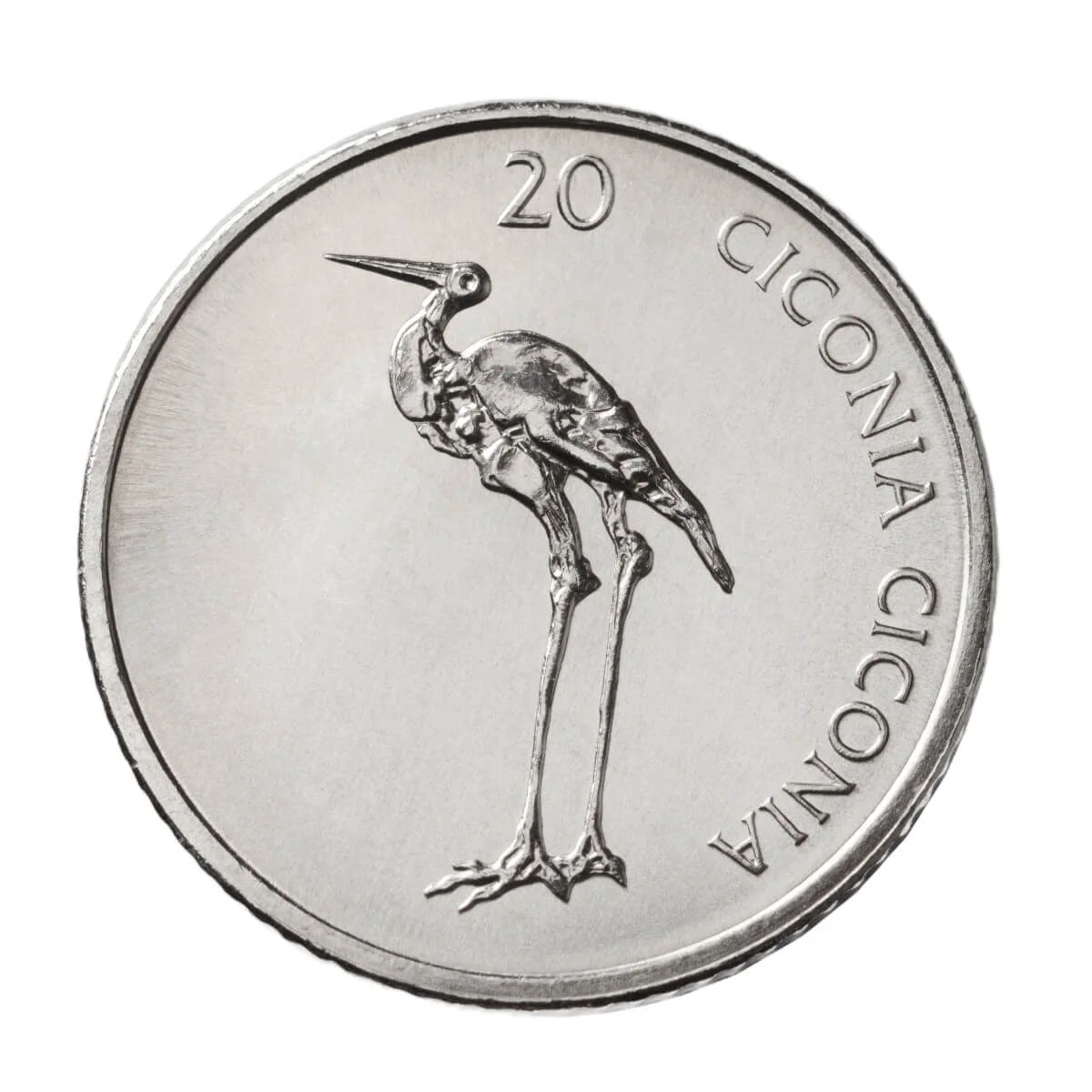 A central stork. Above it, "20" along the upper edge. "CICONIA CICONIA" is along the right edge.
