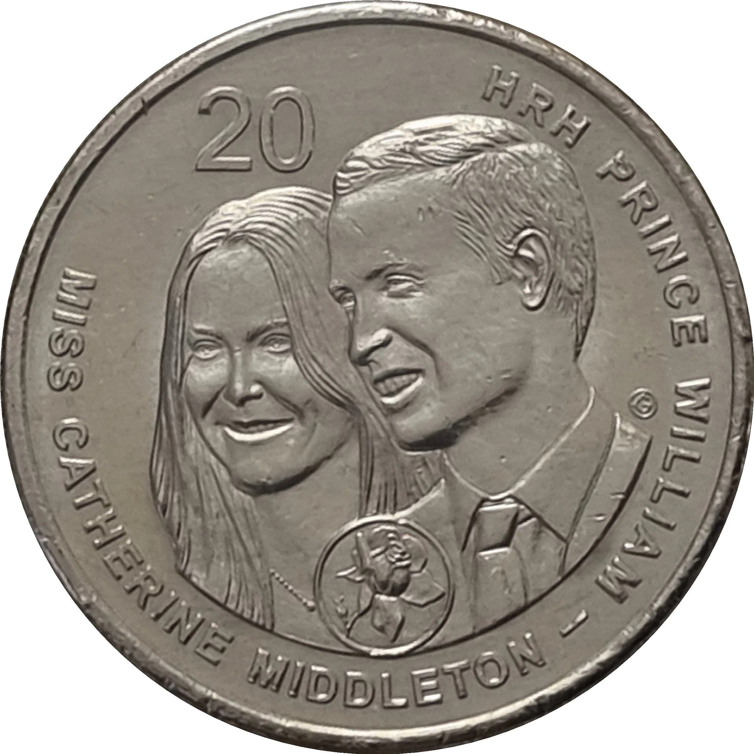 Prince William and Catherine Middleton with English Rose emblem.