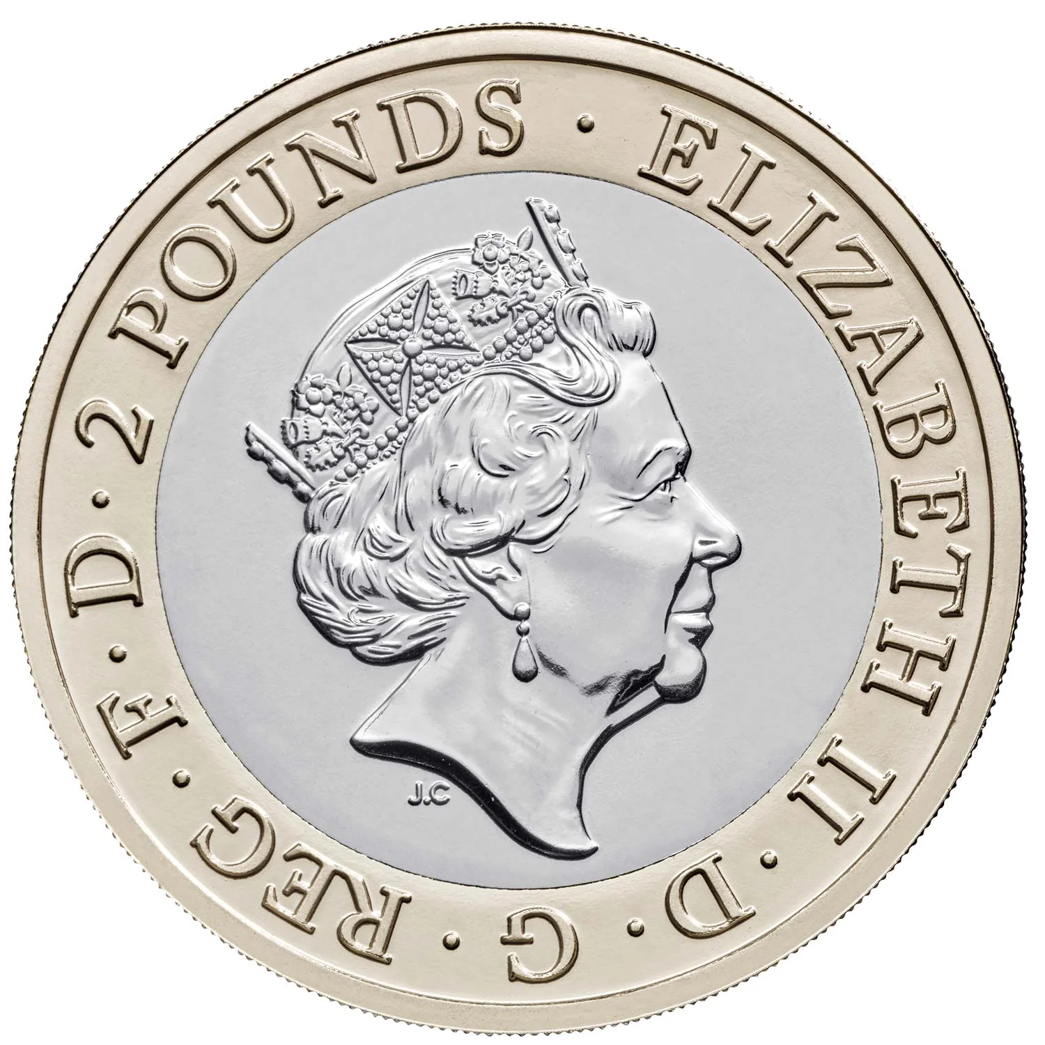 Elizabeth the Second, by the Grace of God, Queen, Defender of the Faith, 2 Pounds.