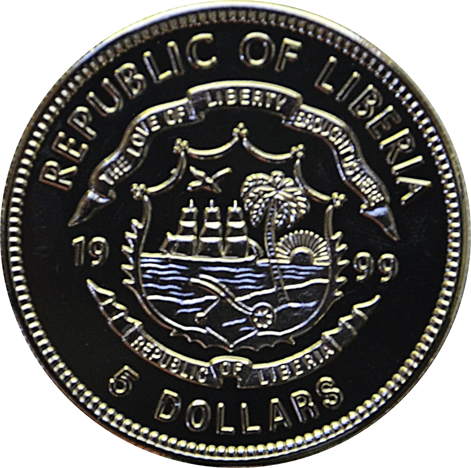 Coat of Arms of Liberia divides date, denomination beneath.