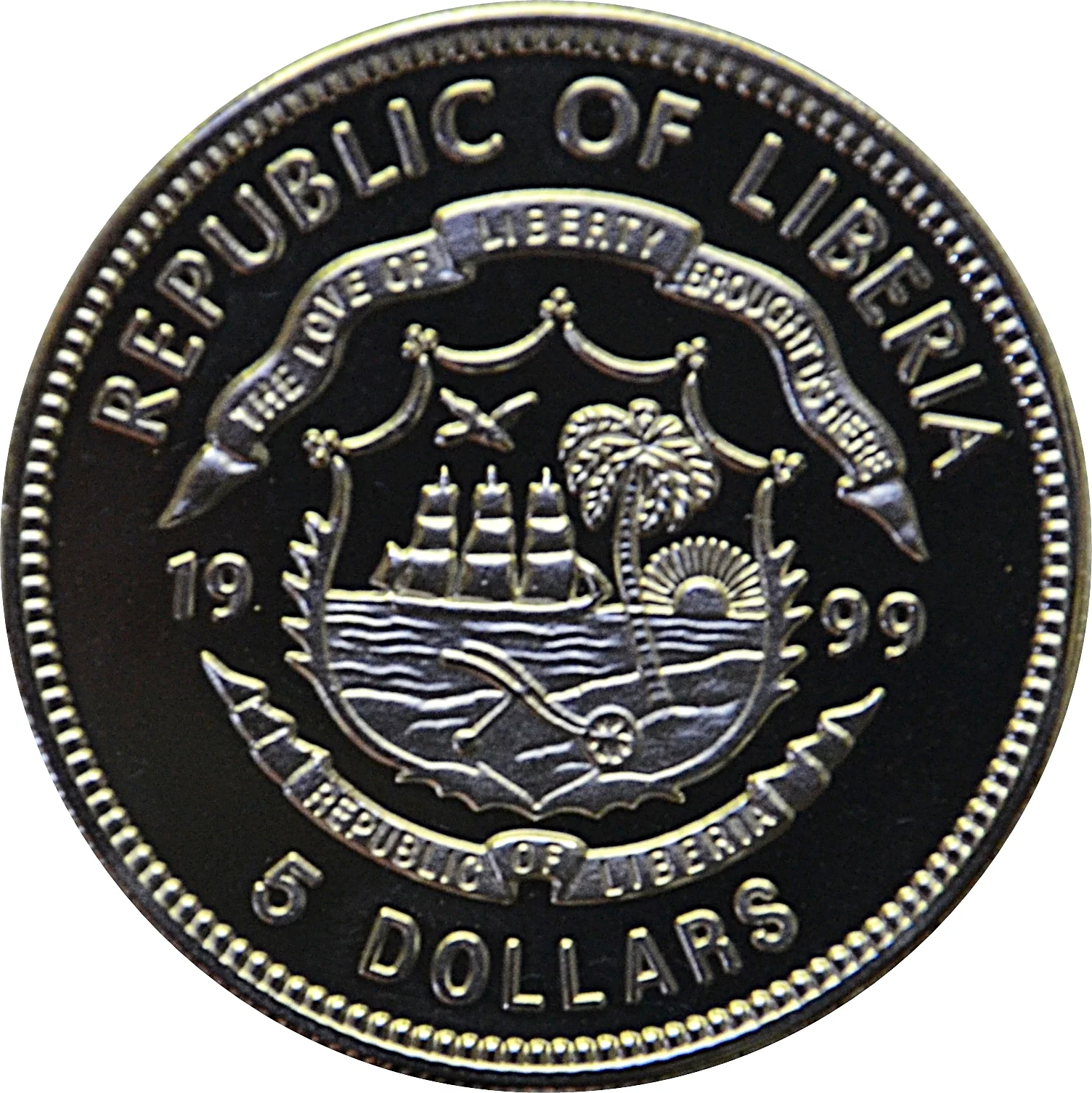 Coat of Arms of Liberia divides date, denomination beneath.