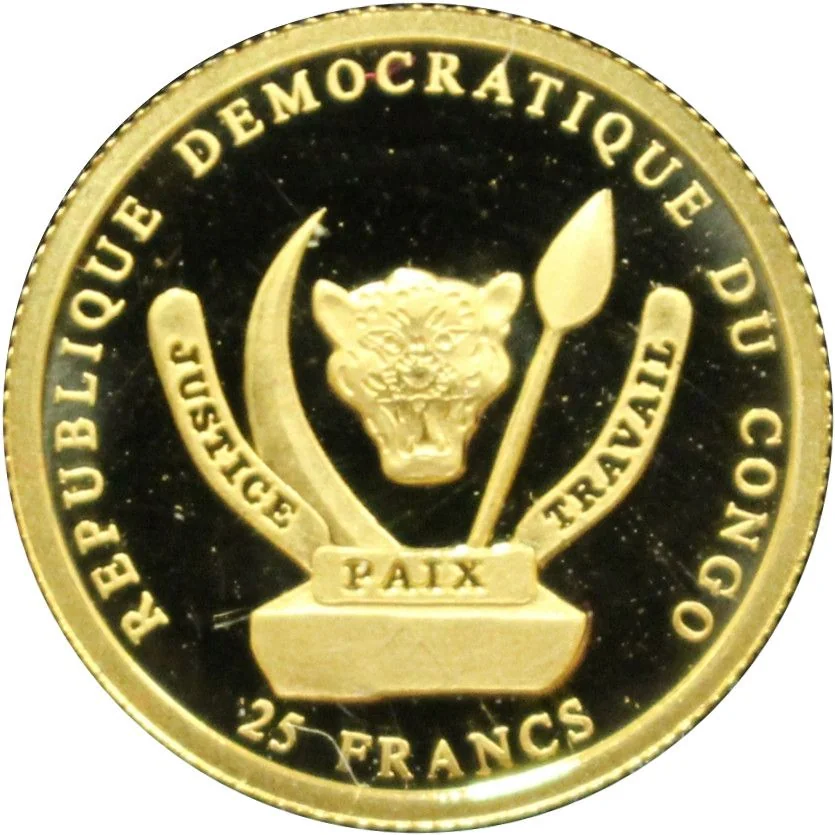Coat of arms of the Democratic Republic of the Congo, encircled by inscriptions.