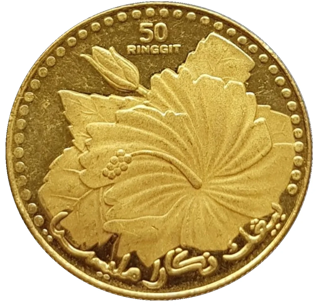 The obverse features a barking deer in its Malaysian jungle habitat.