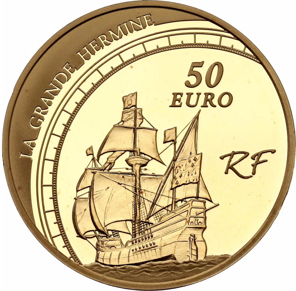 La Grande Hermine, Jacques Cartier's ship, set within a compass.