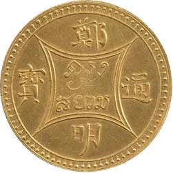Chinese coin inscription: Rama IV's Chinese name encircles "Krung Siam."