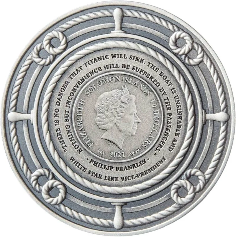 Inscription: "THERE IS NO DANGER THAT TITANIC WILL SINK. THE BOAT IS UNSINKABLE AND