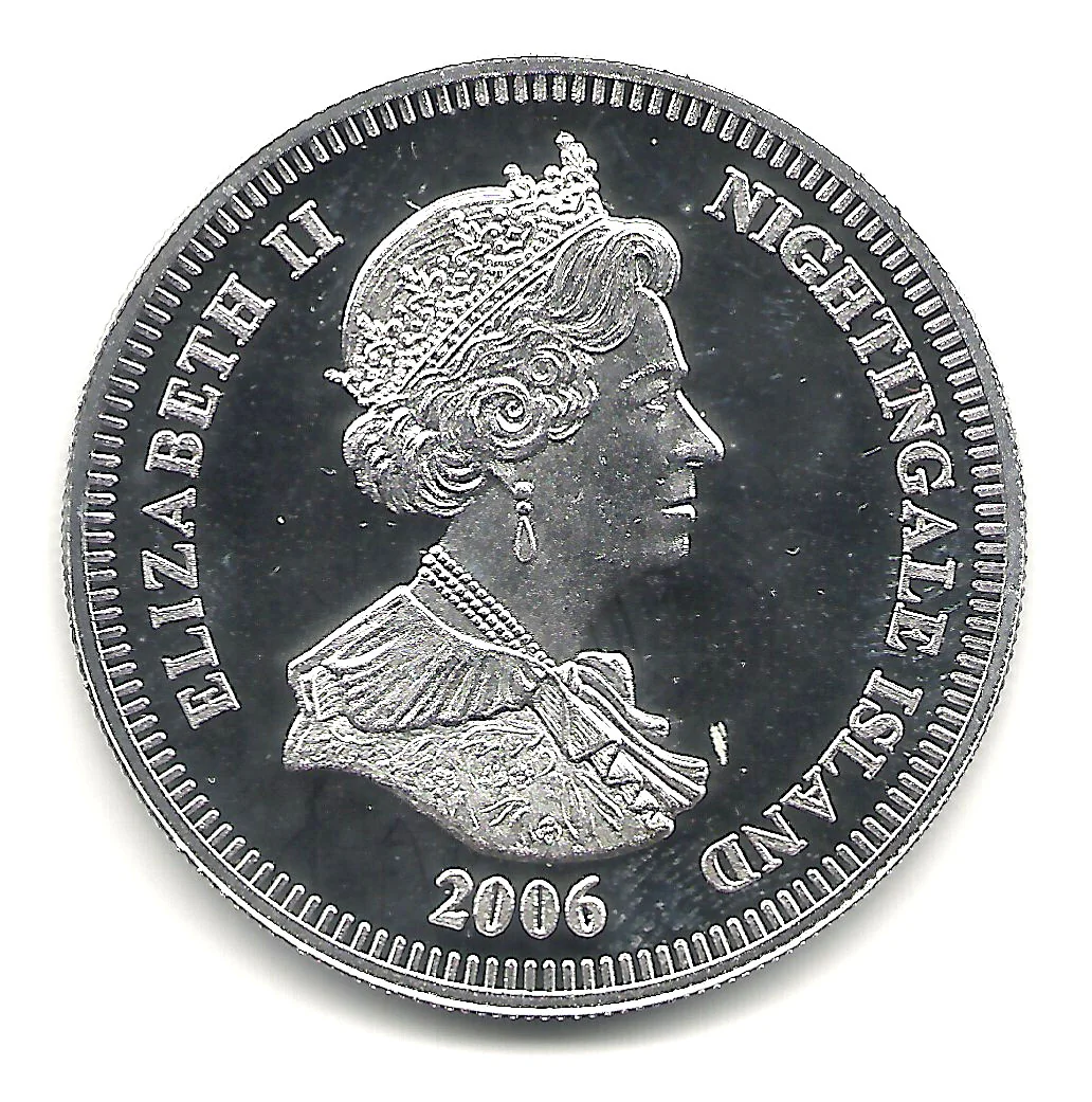Queen Elizabeth II portrait by Arnold Machin, encircled with trumpets, initials, and date.