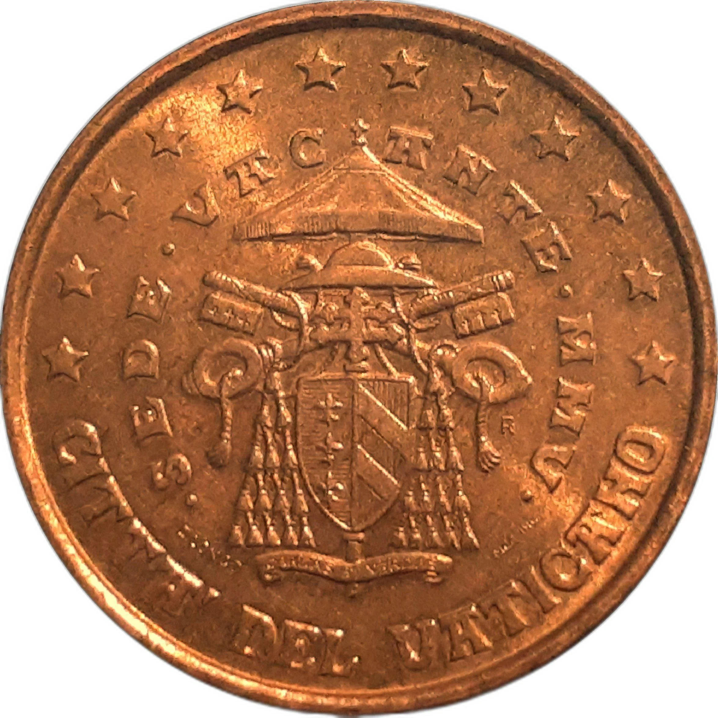 Description: Cardinal Chamberlain Eduardo Martinez Somalo’s coat of arms, overlaid on the Apostolic Chamber emblem, is encircled by “SEDE VACANTE,” the year “MMV” (2005), “CITTA’ DEL VATICANO,” and the twelve European stars.