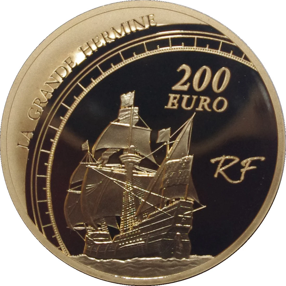 La Grande Hermine, Jacques Cartier's ship, set within a compass.