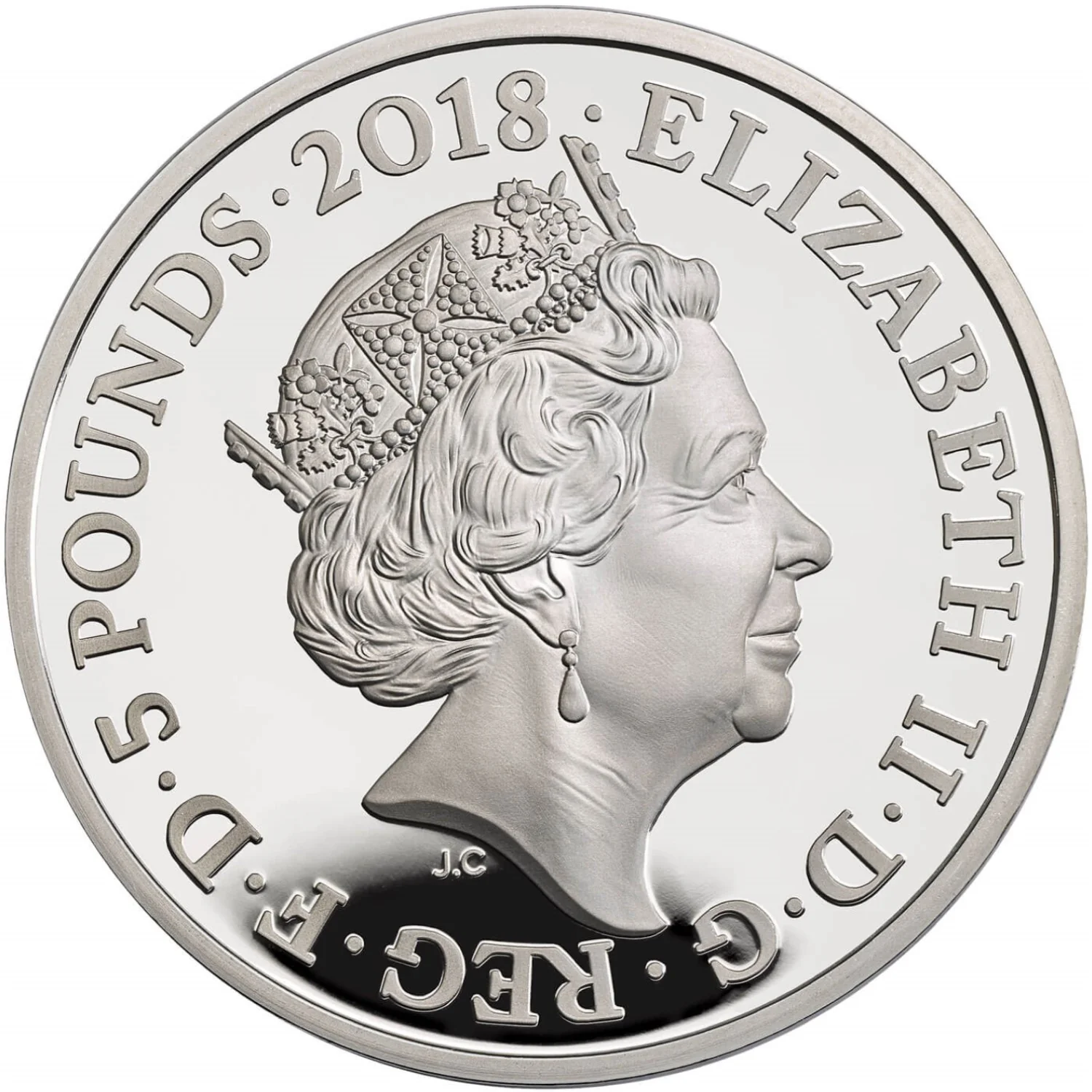 Elizabeth II, by the Grace of God, Queen, Defender of the Faith. 5 Pounds. 2018.