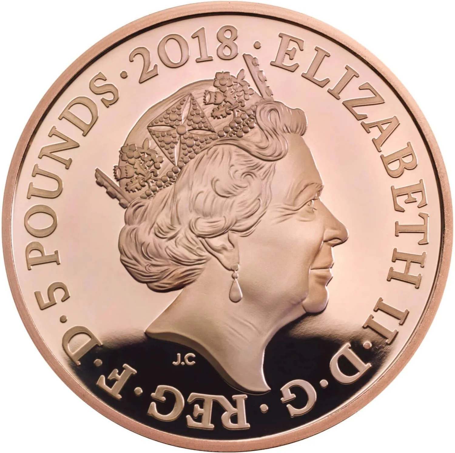 Elizabeth II, by the Grace of God, Queen, Defender of the Faith. 5 Pounds. 2018.