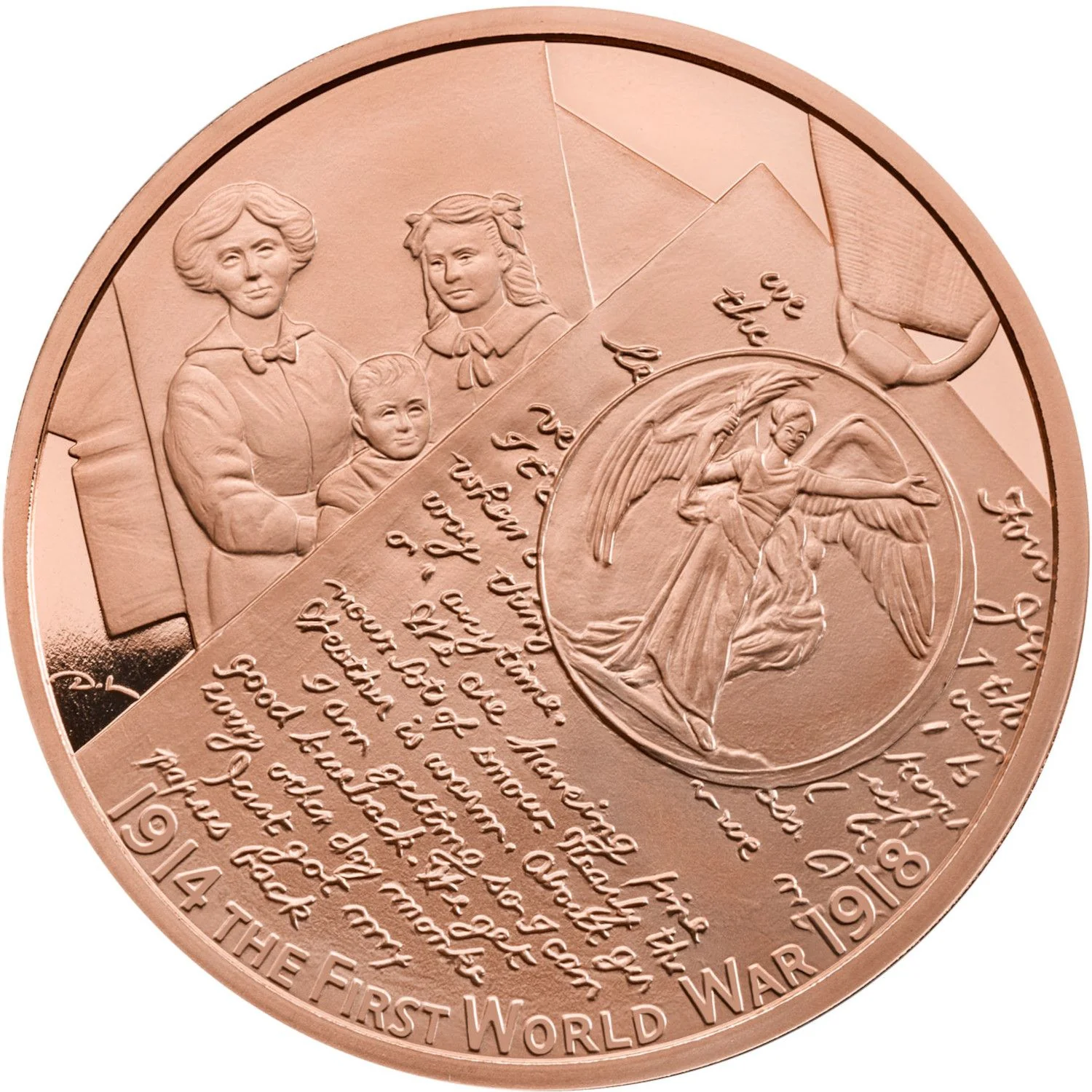 Victory Medal on a letter before a family portrait, with legend and dates below.