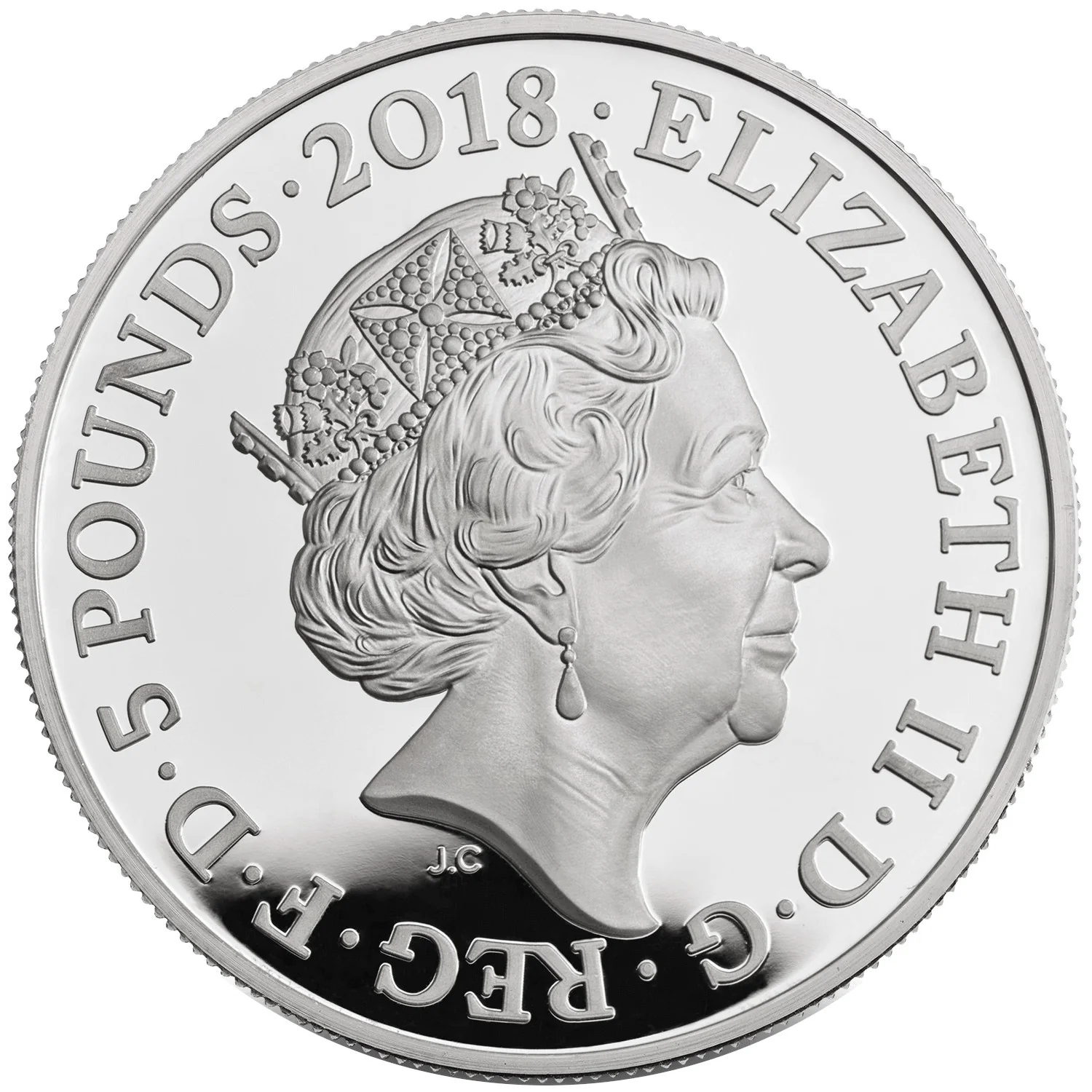 Elizabeth II, by the Grace of God, Queen, Defender of the Faith. 5 Pounds. 2018.