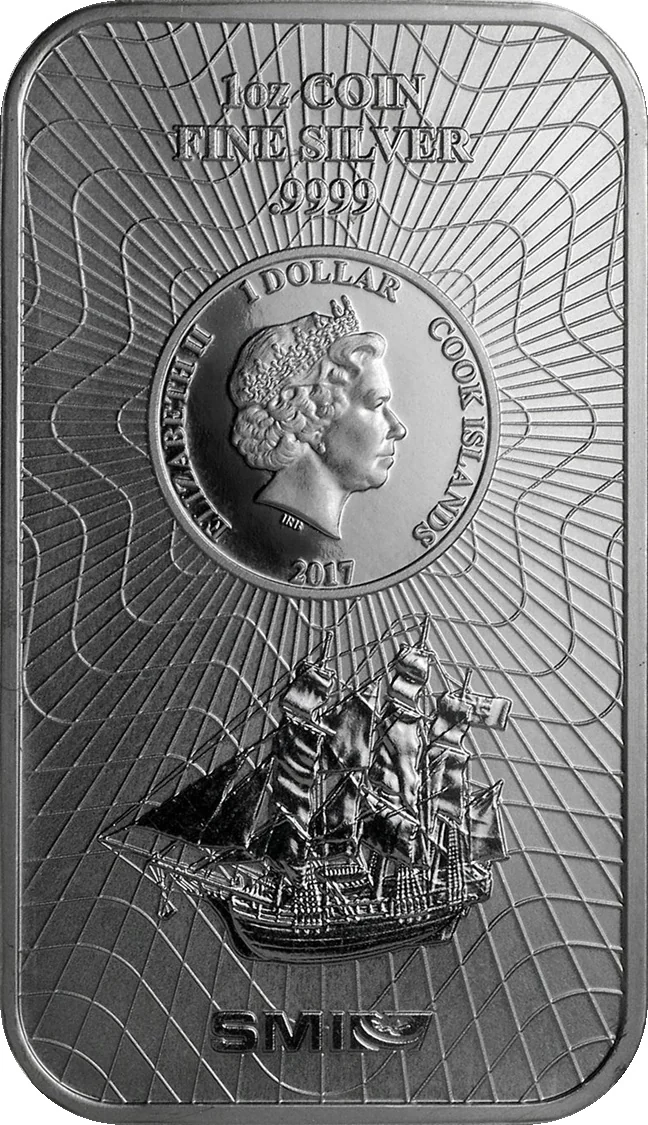 Queen Elizabeth II facing right, with the ship "Bounty" below.