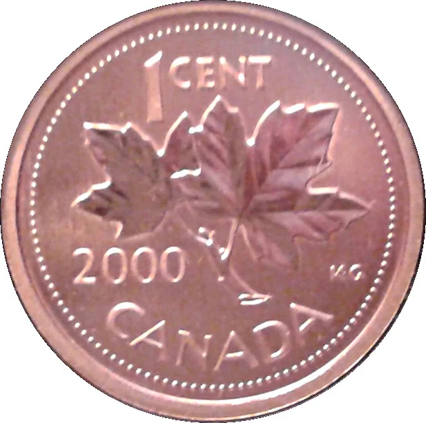 A maple twig encircled by the face value and "CANADA".