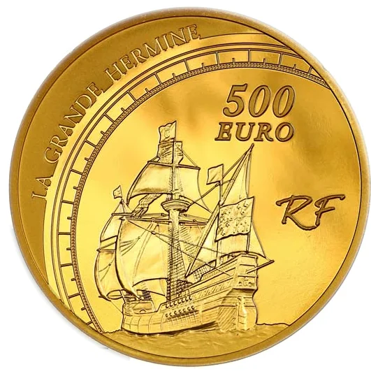 La Grande Hermine, Jacques Cartier's ship, set within a compass.