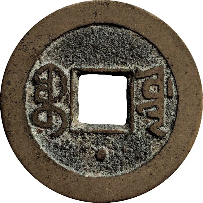 Two Manchu words flank the hole, each marked with dots.