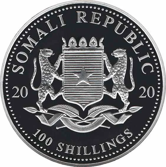Somalia coat of arms between date and value.