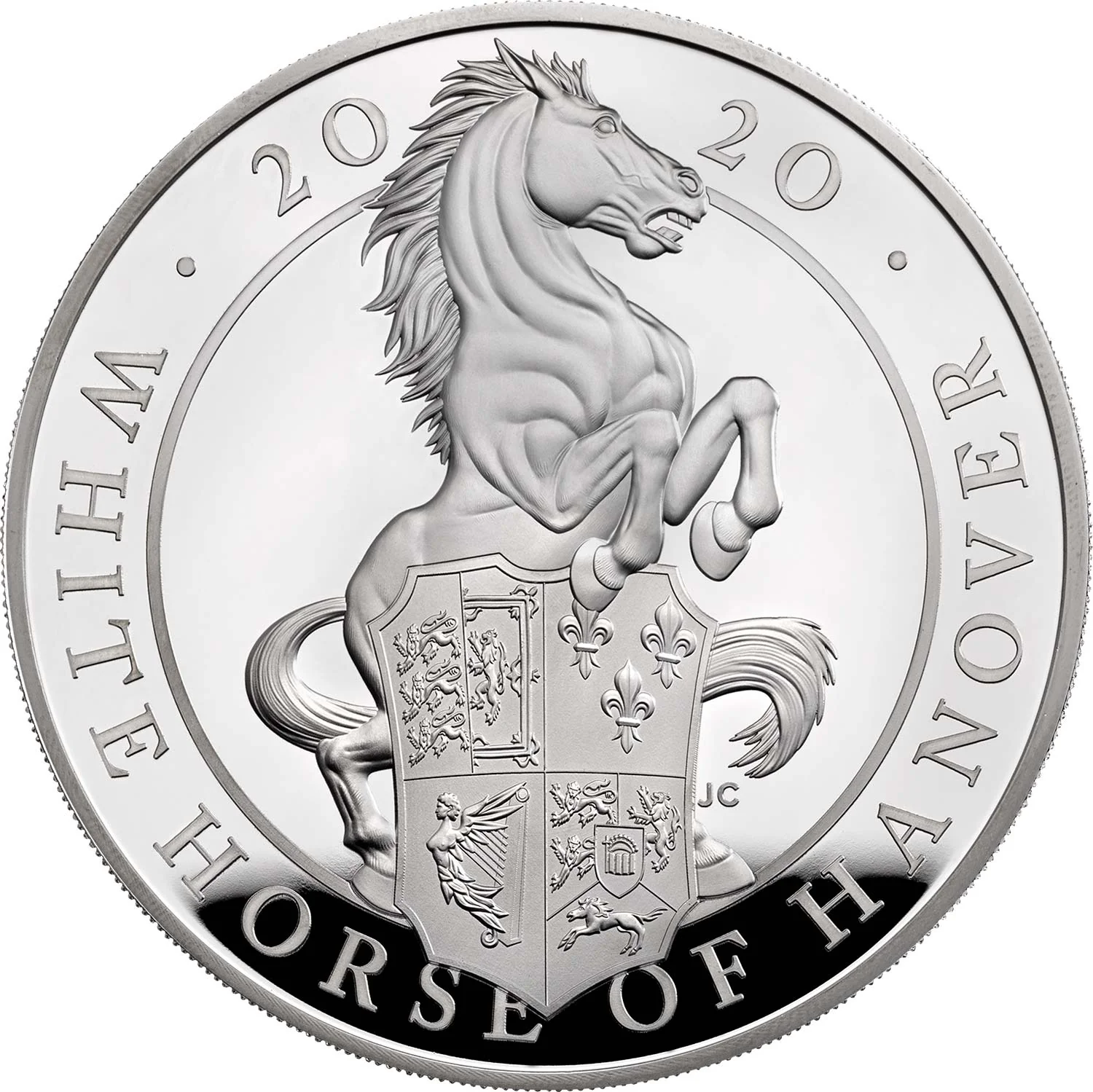 White Horse of Hanover supporting the House of Hanover shield, with surrounding legend.