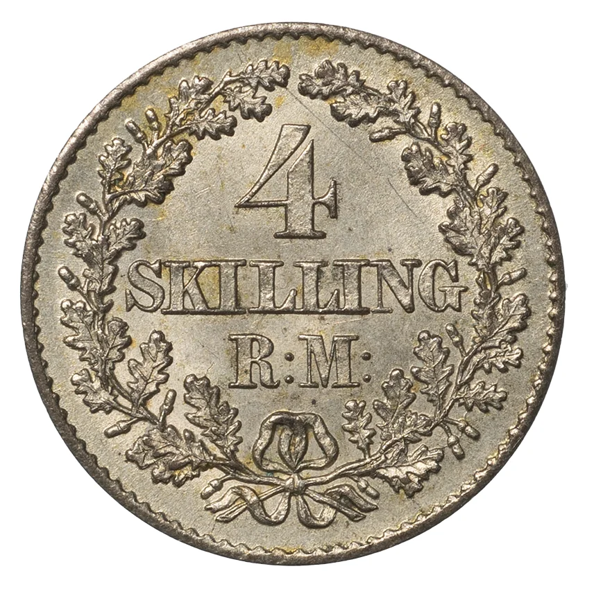 Subdivision: 4 Skilling rigsmont = ¼ Rigsdaler courant = 1⁄24 Rigsdaler
