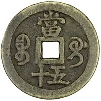 Two Manchu words flank a central hole, each with one Chinese character above and two below.
