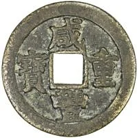 Two Manchu words flank a central hole, each with one Chinese character above and two below.