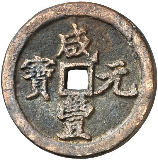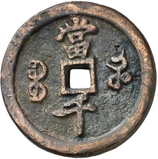 Two Manchu words flank a central hole, each with a Chinese character above and below.