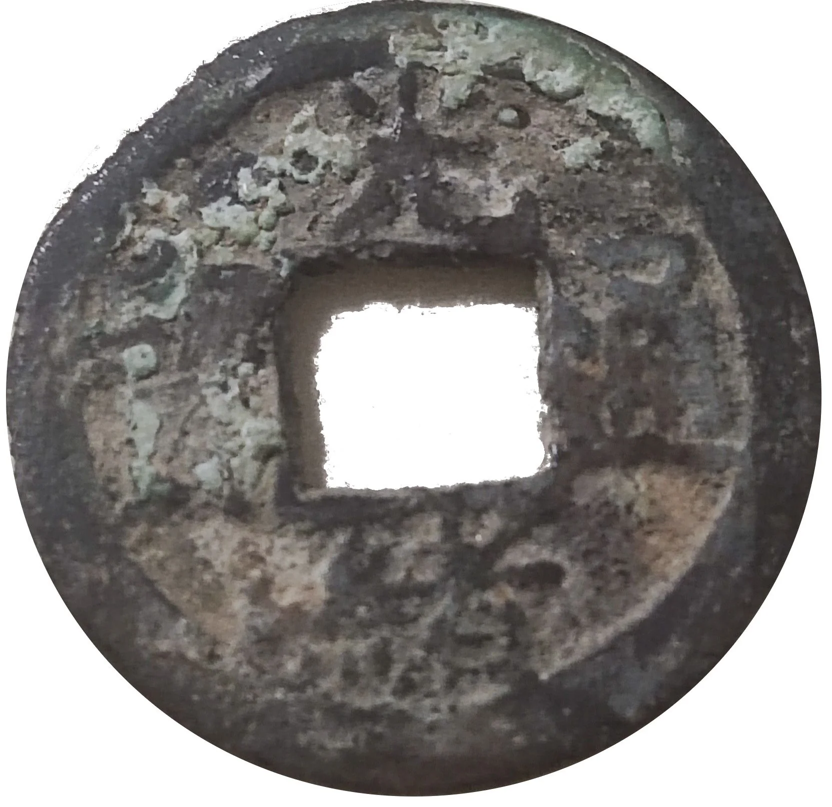 Two Manchu words flank the hole.
