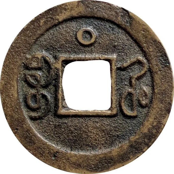 Two Manchu words flank the hole, each with circles above and below.