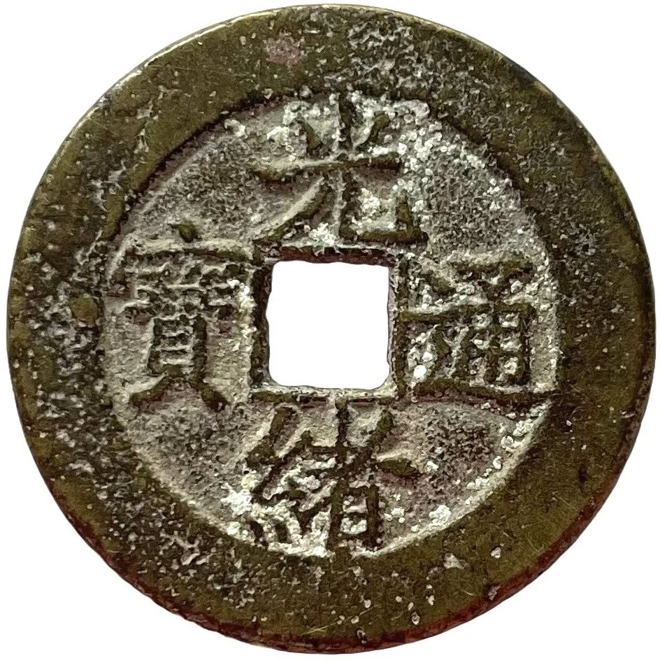Two Manchu words (vertical) flank the hole, each topped with a circle.