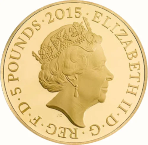 Elizabeth II, by the Grace of God, Queen, Defender of the Faith, 5 Pounds, 2015