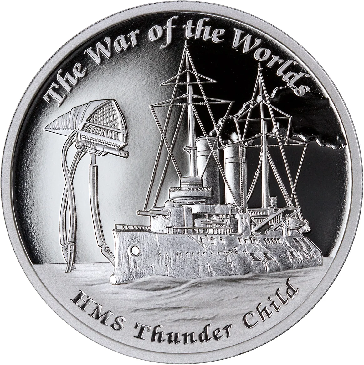 The Thunder Child battling three tripods at sea.