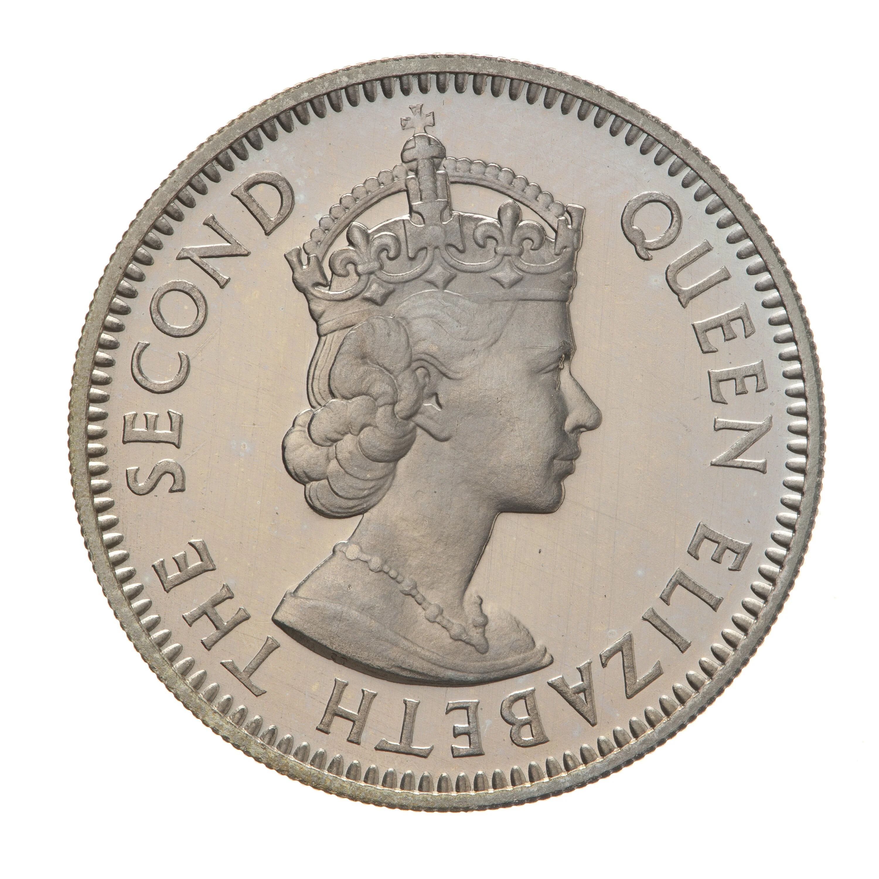 Portrait of Queen Elizabeth II facing right.